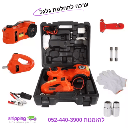 ערכה להחלפת גלגל: ג'ק חשמלי לרכב + קומפרסור לרכב + מפתח גלגלים חשמלי